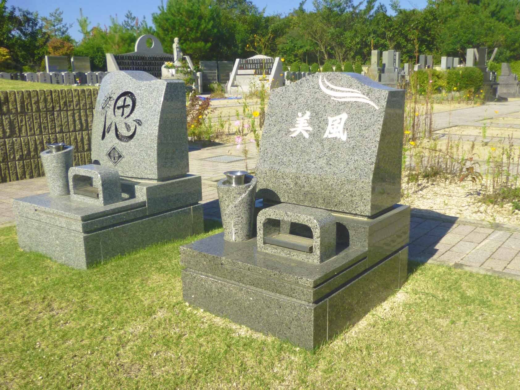 当霊園で人気の芝生区で、洋型墓石を建立いただきました。洋型墓石は、文字やイラストに想いのある方が多いのですが、こちらの施主様も「風」を彫刻しようと考えていたところ、想いのつまった「美」の文字も使って「美風」と決まりました。風のイラストも当社で何パターンか提案したところ、この写真のイラストに決まりました。文字、イラストも大きさにもこだわって完成した石碑です。施主様も喜んでいただきましたが、このご縁に関われた担当者も感謝の気持ちでいっぱいです。納骨式も無事に終わりましたが、式中もおだやかな風が包みこんでくれていた気がしました。